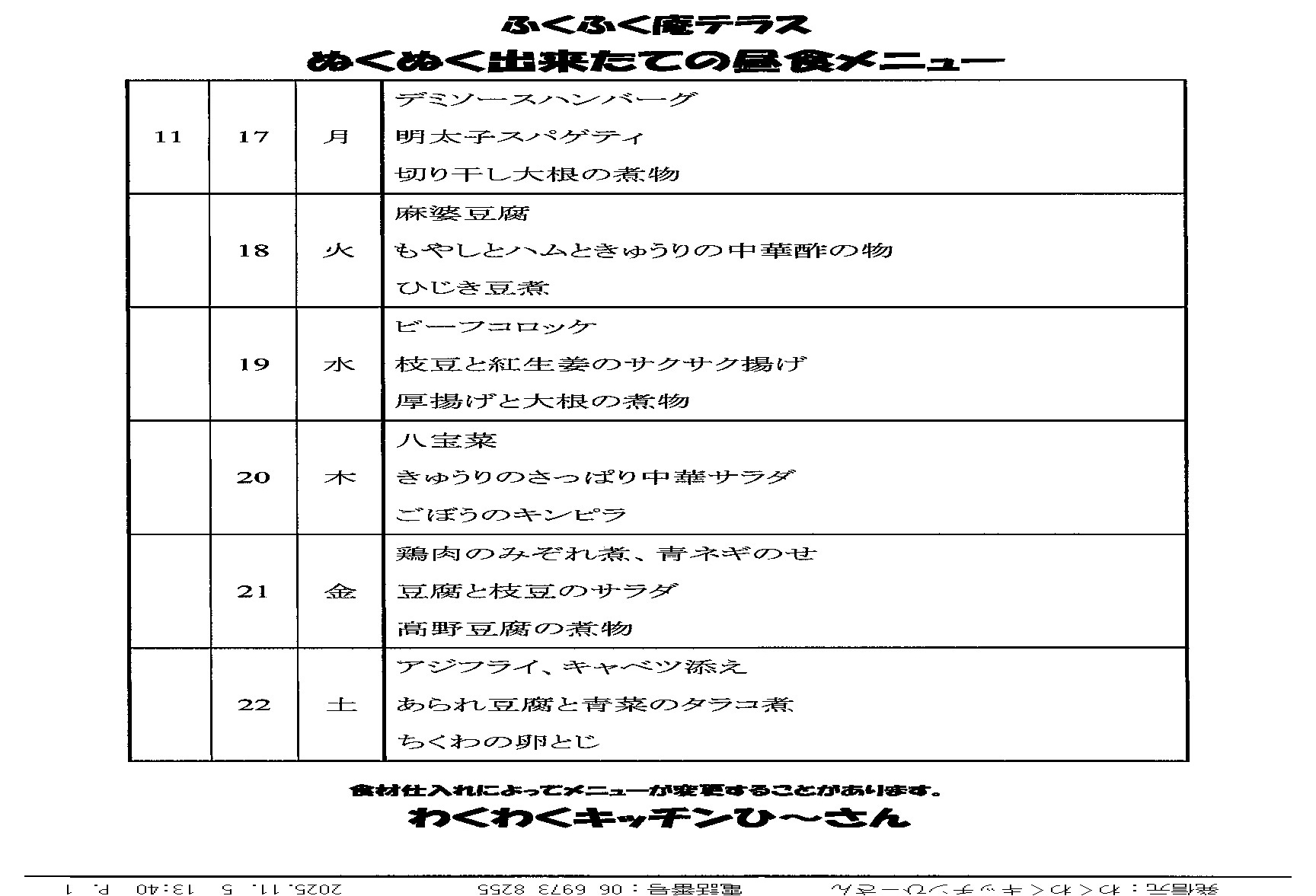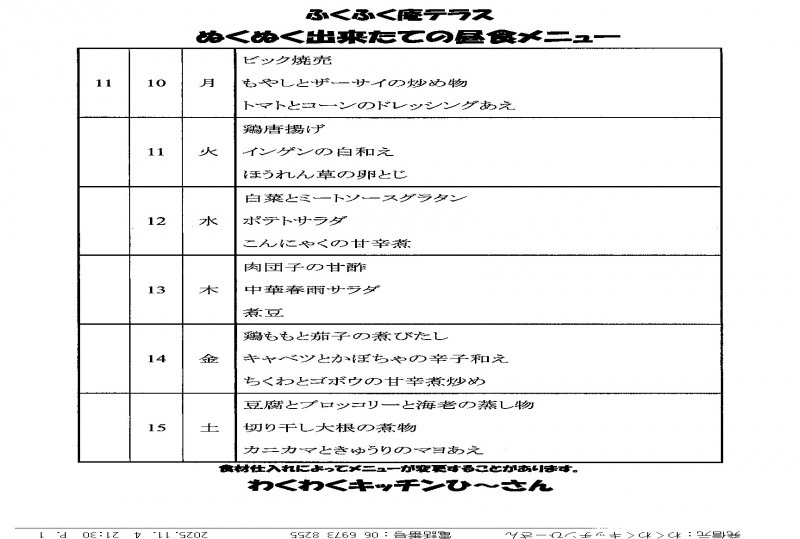 食事メニューアップロード遅れて申し訳ありません。